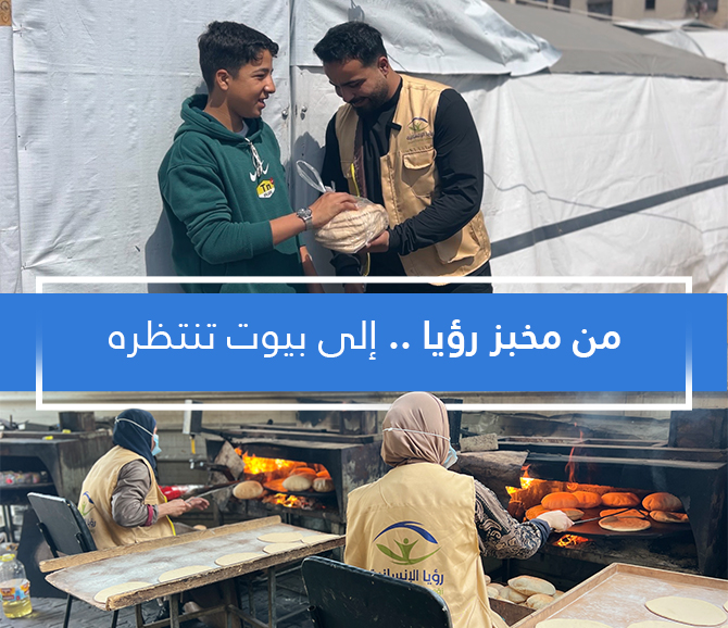استجابة لاحتياجات الأسر المتضررة، عملت مؤسسة رؤيا الإنسانية على تشغيل مخبز رؤيا، بهدف توفير الخبز بشكل يومي للأسر التي تواجه صعوبة في تأمين احتياجاتها الأساسية.
